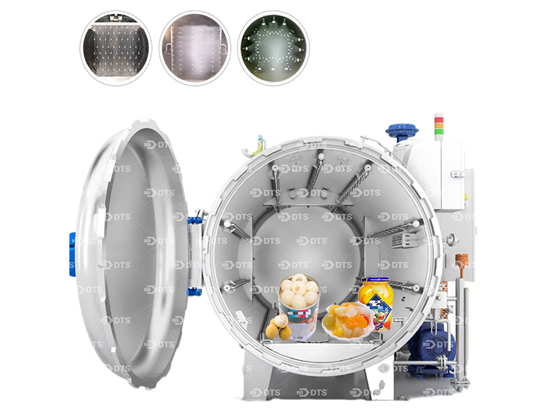 The retort system reduces heat loss through a double-layer structure, and the circulating water is strictly treated and purified. The pressure sensor and regulating device precisely control the pressure. The automatic control system realizes full automation and also has functions such as fault diagnosis.